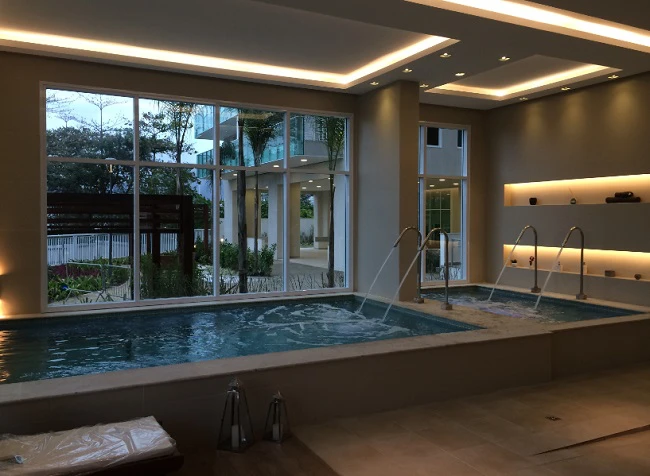 Lazer: Espação Churrasqueira e Pizza; Lounge Gourmet; Salão de Festas kids; Brinquedoteca; Futebol kids; Espaço lutas; Sala multiuso; Fitness; Sala de Spinning; Pergolado; Spa e hidroterapia; Sauna a vapor; Essence Shower; Sala de Massagem; Salão de Beleza; Lounge da piscina; Piscina Infantil e Adulto; Playground descoberto; Espaço Leitura; Salão de jogos ; Garage Band; Cinema; Espaço Office;