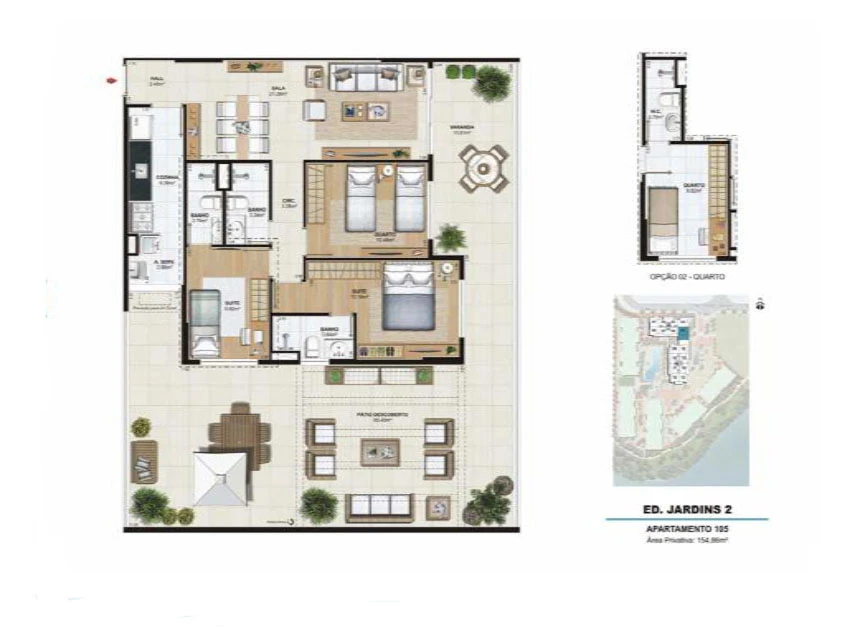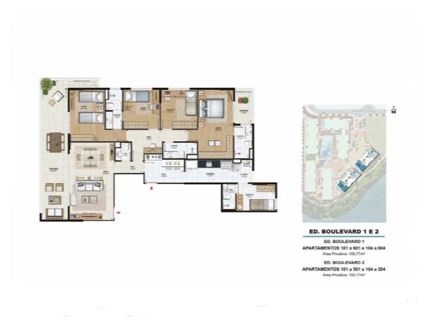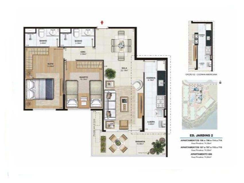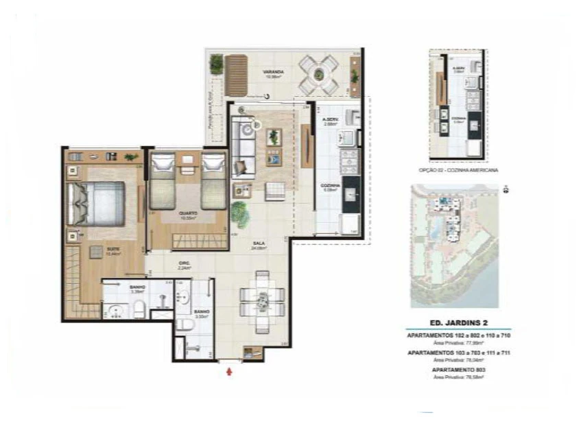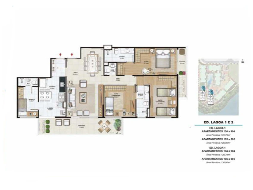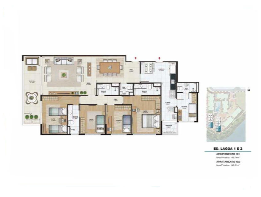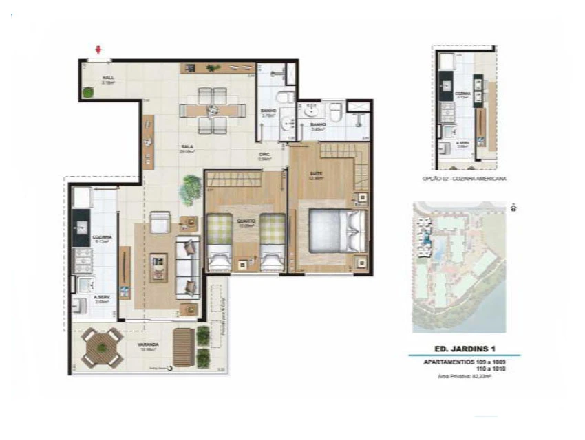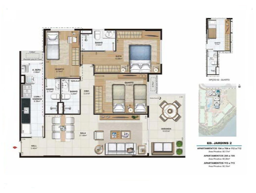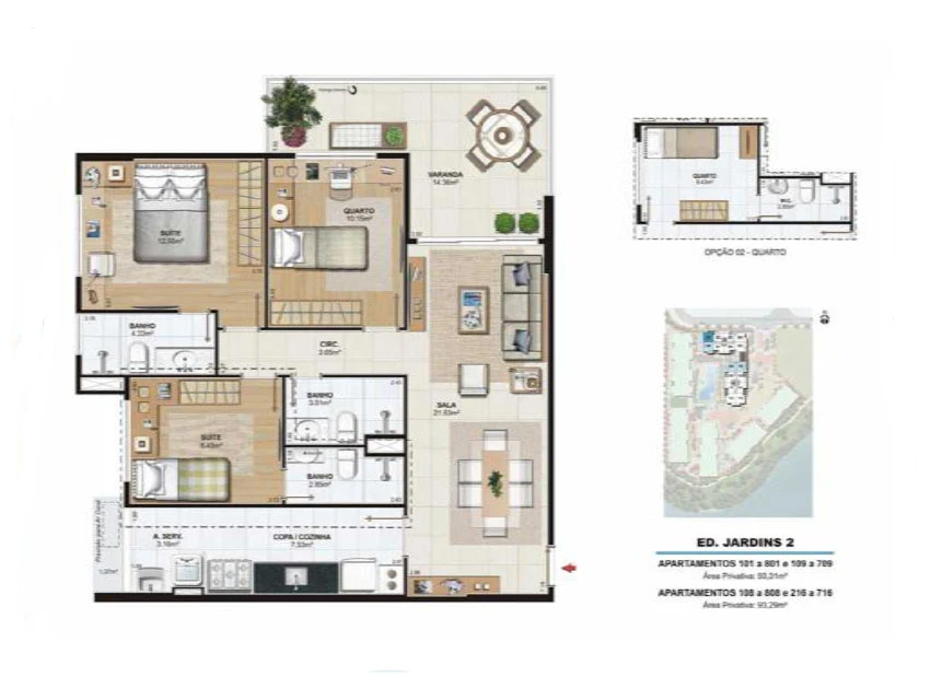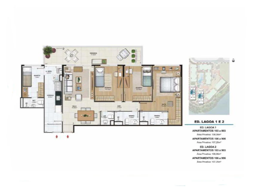 Apartamentos de 3 quartos 93,19m² até 107,25m²